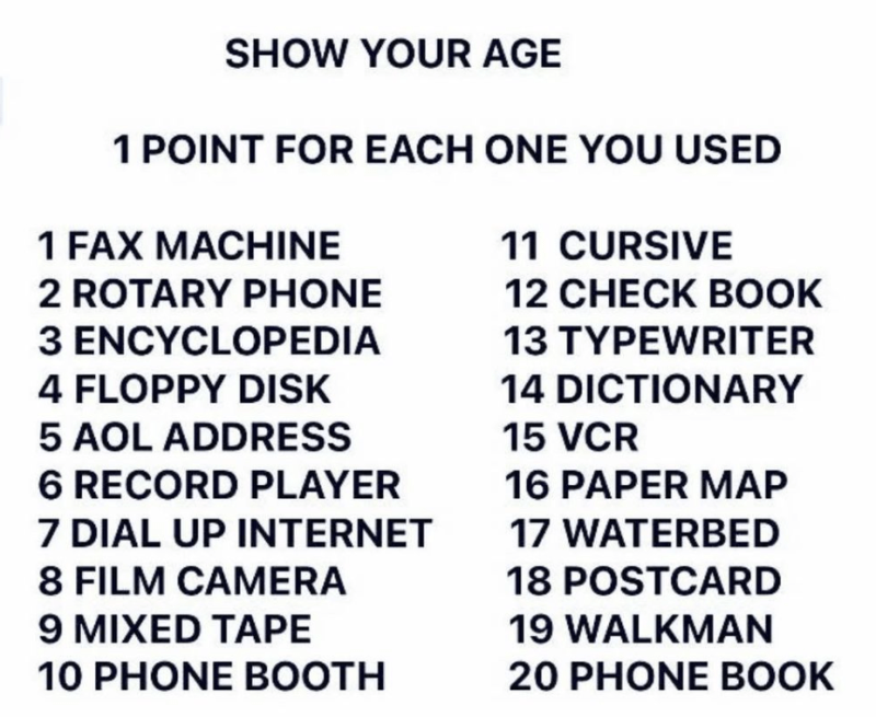 I got 17–I saw #2, #6, and #13 in my household and elsewhere as a wee one, but I never used them. I think us elder millennials were the very last group to have at least seen all these things and use most of them. *pops a Werthers* My childhood bestie had a waterbed and sleepovers were fun…until we jumped on her bed, of course.